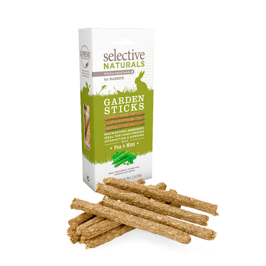 Selective Naturals Garden Sticks are specially formulated treats for rabbits and guinea pigs, featuring a wholesome blend of natural ingredients. These high-fiber sticks support digestive health and dental maintenance, perfectly blending nutrition and indulgence.
