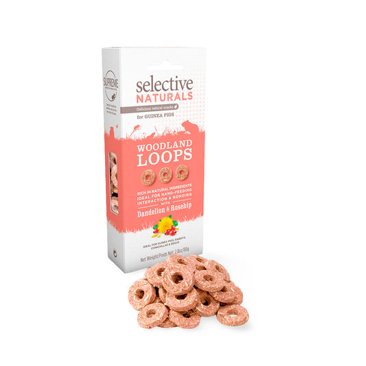 Regular price $10.99Regular priceUnit price / perSale price $10.99Supreme Science Selectives Woodland Loops are an exquisite treat, meticulously crafted with natural ingredients to support your small pets well-being. These exceptional snacks combine the benefits of timothy hay and alfalfa with the nutritional values of dandelion and rosehip.