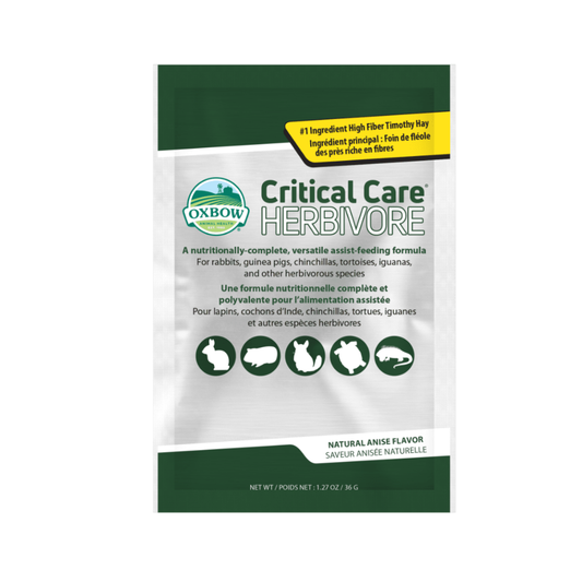 Regular price $10.99Regular priceUnit price / perSale price $10.99Developed with the assistance of top exotics veterinarians and nutritionists, Critical Care is the industry standard in recovery nutrition for herbivores with poor nutritional status resulting from illness or surgery. Critical Care contains all the essential nutrients of a complete diet, as well as high-fiber timothy hay to support proper gut physiology and digestion.